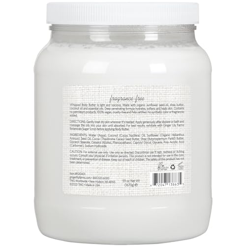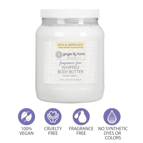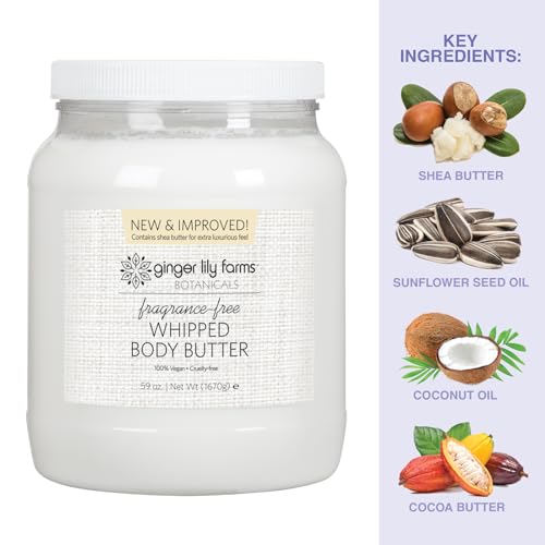 Ginger Lily Farms Botanicals Whipped Body Butter for Dry Skin, Ultra-Hydrating, 100% Vegan & Cruelty-Free, Fragrance-Free, 59 Ounces