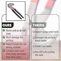 - Bates choice nail puller is the perfect tool for carpenters, handymen, construction workers to be able to pull nails out.The pack includes:11 inch Nail PullerMade From High Carbon Steel For Long Lasting Performance And Preventing RustSoft Plastic Coated GripEasily Remove Nails, Even With Damaged Head, From WoodPerfect For Carpenters, Construction, Handymen, Installing New Floor, Etc.