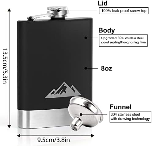 KWANITHINK Hip Flask para Licores para Hombre, 8oz Flask de Whisky de Acero Inoxidable con Tapa Integrada y Embudo, para Camping, Senderismo, Escalada, Regalo del Día del Padre (Negro)