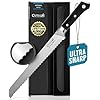 - PREMIUM PERFORMANCE – Perfectly engineered serrated bread knife tapered to a razor-sharp edge for effortless slicing thick breads, toasts, bagels, baguettes, brioche, cakes and more.