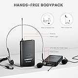 WIRELESS OPERATION: Quad channel wireless headset/lapel/handheld microphone system operates in VHF frequency band to enjoy cable-free operation. Metal build receiver for durability and high quality plastics build handheld and bodypack for light-weight feature. Green LED lights above each individual volume control knob enable users visualize the pair up between receiver and transmitters RELIABLE PERFORMANCE: Cardioid sensitive mic capsule enables easy sound pickup and smooth sound transmission, delivering state-of-the-art clear true sound performance. Stable fixed VHF signal ensures unsurpassed interference-free distortion-free operation, operating distance is up to 160ft line of sight in open space. Suitable for public speaking, interview, group karaoke, broadcasting, church, and outdoor events VERSATILE USE: Easy setup wireless microphone system and convenient operation with ON/MUTE/OFF switch on both cordless mic and bodypack. Metal receiver features 2 XLR outputs and one 1/4’’ audio output jack to connect to your amplifier, mixer, or other PA system. Equipped with handheld mic, wireless headset mic, and wireless lavalier mic in one package for more flexibility BOX CONTENTS: 1 x 4-channel receiver, 2 x handheld mics, 2 x VHF bodypacks, 2 x headset mics, 2 x lapel mics, 1 x 1/4‘’ audio cable, 1 x power adapter, 1 x user manual, 8 x AA batteries, 1 x 6.5mm to 3.5mm adapter Purchase with Confidence: Phenyx Pro products are crafted with premium components and precision engineering, ensuring trusted quality and lasting reliability. We stand firmly behind every product we make.