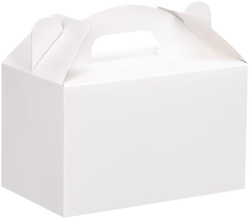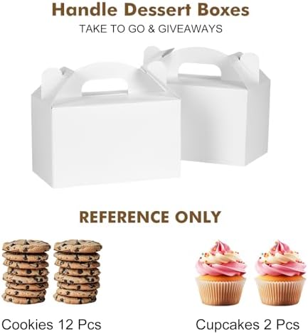 Moretoes 48 Pack White Party Favor Treat Boxes, Gable Gift Boxes with Handles for Birthday, Wedding, Baby Shower