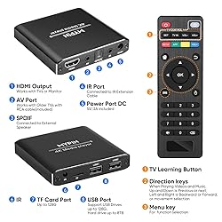 4K Media Player with Remote Control, Digital MP4 Player for 8TB HDD/USB Drive/TF Card/H.265 MP4 PPT MKV AVI Support HDMI/AV/Optical Out and USB Mouse/Keyboard-HDMI up to 7.1 Surround Sound (Black)