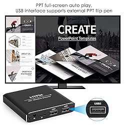 【4K Media Player】-- Experience Full 4k@30hz media files in this digital media player; It supports a single file up to 4GB(FAT32) or 30GB(NTFS) in MKV, AVI, TS/TP, MP4/M4V, MOV, VOB, M2TS, WMV, PMP, PG, M2TS; It is capable of 4K video only for 4K TV, HDMI up to 7.1 surround sound, good for home entertainment systems;Made of aluminum alloy, it has better protection during carrying 【Dual USB Ports】-- Plays from TF card / USB flash drives(up to 128G) and USB hard drives up to 8TB. Dual USB ports for connecting two devices, but it can only read one of them at one time. You can also connect a USB mouse or keyboard to operate the player, making your TV smarter by adding the ability to play videos, music, and photo slideshows or PPT 【H.265 Decoding】-- Powerful H.265 decoding loads files by taking half time and half occupation of bandwidth of H.264 decoding, it is much more efficient and faster; Enjoy a higher quality video experience with less buffering 【Multiple Play Modes & Vertical Display】 -- This 4k media player can play various popular videos, music, and photos. Videos and photos can be played in order, and music can be played randomly; It also reads PPT document, you can connect a PPT flip to display it better. It also supports horizontal and vertical screen, compatible with your vertical screen 【HDMI & AV & Optical Output】-- You can manage the media player to play MP3 or WAV songs to your speakers via optical or AV output to experience better audio effects. It also reads embedded and external subtitle files like SRT, SMI, SUB, SSA