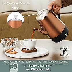 Moss & Stone 10 Cup Copper Percolator Coffee Pot Electric, Stainless Steel Coffee Percolator Electric With Keep Warm Function, Classic Perculator Pot With Removable Basket for Home or Office