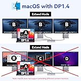 USB C Docking Station: Experience unparalleled versatility with our 13-in-1 Laptop Docking Station 3 Monitors. Featuring a comprehensive array of connectivity options, including 2 x HDMI, 1 x DisplayPort, 2 x USB-C 3.1, 2 x USB-A 3.0, 1 x USB-A 2.0, 1 x Ethernet port, 1 x MicroSD/SD card slots, 1 x 3.5mm Audio & Mic Jack, and 1 x 150W DC power charging port (provide a 150W DC power supply). Compatible with Thunderbolt 4, Thunderbolt 3, USB4, and full-function USB-C ports, this docking station dual monitors caters to all your connectivity needs. Maximize Visuals: Immerse yourself in stunning visuals with support for Single 4K@144Hz output for Windows (under DP1.4 protocol) and Single 4K@120Hz output with DisplayPort for macOS (under DP1.4 protocol). Note:4K@144 Can only be used for single display expansion. If you want to expand multiple displays, please lower your resolution, otherwise other displays cannot work. Multiple Display Docking Station: Elevate your productivity with our docking station's dual HDMI ports and a DisplayPort. Seamlessly extend your workspace across multiple monitors, enabling triple/dual display functionality (Note: MacOS does not support extending different content across monitors). Powerful Charging Capability: Keep your laptop and other devices powered up with ease. Our USB C dock's 150W DC power adapter distributes 100W for charging your laptop, while the USB-C port provides an additional 30W for devices such as phones, tablets, watches, and headphones. High-Speed Data Transfer: Enjoy lightning-fast data transfer speeds with the laptop dock delivering up to 10Gbps, along with 2 x 10Gbps USB-C ports for seamless connectivity. With additional features including a 1Gbps RJ45 Ethernet port, 2 x 5Gbps USB-A ports, 1 x 480Mbps USB-A port, and a 3.5mm Audio & Mic Jack, our docking station caters to the needs of both gamers and professionals alike.