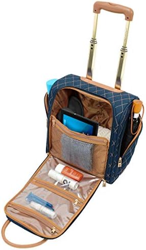 - The vertical under the seat bag is designed to comfortably fit underneath most standard airline seats. Versatile case can be used as a rolling tote, business case or as an Overnighter. Fully lined interior has multiple zippered storage compartments.