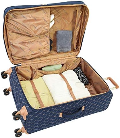 - Fashionable & durable stitched quilted polyester fabric. The queensbury 4 Piece Set Consists of a 20" Expandable spinner carry-on, 24" Expandable spinner, 28" Expandable spinner and 15" Vertical under the seat bag. Spinners have aluminum channel tubes for added strength and ergonomic comfort grip locking trolley handle.
