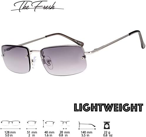 The Fresh Minimalist Small Rectangular Sunglasses Clear Eyewear Spring Hinge - Gift Box Package (203-Silver, Gradient Grey, 51)