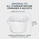 - Say BYE BYE to thin portable commode liners that leak!! Finally...an AMAZING VALUE, mess-free solution for caregivers, patients, handicapped and the elderly! Lunderg bedside commode liners pack home health care equipment (100 liners / no absorbent pads) are designed to fit standard sized bedside commodes (see above product images for visual description). Simply cover the removable commode pail with a Lunderg leak-resistant plastic disposable liner for your comfortable mess-free solution and the sanitary environment! Never clean another toilet bucket ever again! Easy to use and Dispose of Place the potty liners over the pail and secure edges between frame and bucket. After use, empty fluid into the toilet, remove the liner from the pail and pull the drawstrings to close the liner, wrap drawstrings around the top of the opening of the toilet bags, seal with a knot then throw away. Please dispose of in a sanitary manner. DO NOT FLUSH! Originally designed for hospitals Lunderg portable toilet bags are quality grade and match the strict standard of the hospital industry and their strength guarantee you to avoid any leaks. Quality you can trust Lunderg offers designed solutions for better health. We also care about our customers and their shopping experience! We back every purchase of our potty chair liners with 100% no questions asked money-back guarantee! A company with a cause For every box of Lunderg adult potty chair or camped toilet liners that we sell we donate a portion of proceeds to charity. Both of these causes are near and dear to us as we have veteran family members and well as relatives with Parkinsons. Thanks for your support.