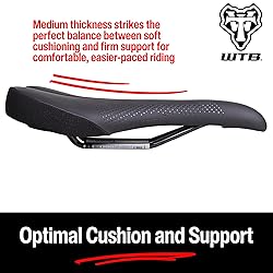 OPTIMAL CUSHION AND SUPPORT: Features medium padding thickness, striking the perfect balance between soft cushioning and firm support for comfortable, easier-paced riding CRADLING CONTOURED SUPPORT: The deeply contoured shape cradles and stabilizes the pelvis, providing essential support especially for riders with reduced flexibility or stability. THREE WIDTHS: Perfect Saddle Fit of the Sit Bones --- Experience unparalleled support with right saddle width for your sit bones (ischial tuberosities) which are in the Narrow, Medium, or Wide version of our best-selling WTB Volt saddle, offering correct sit bone support for enhanced ergonomic fit and optimal power transmission during all your cycling adventures, from trails to road rides. COMFORT ZONE FOR PRESSURE RELIEF: This cutout is an open area on the underside in the base of the saddle shell towards the nose that provides pressure relief for soft tissue by allowing the saddle padding to slightly push through the plane of the saddle base for extra comfort so you can ride longer and more comfortably. THE LOVE CHANNEL: Saddle padding relief down the middle on the top center of WTB saddles from the rear of the saddle to approximately 50 mm (2”) from the tip of the saddle nose that provides soft tissue relief and prevents unwanted pressure that would otherwise cause numbness.