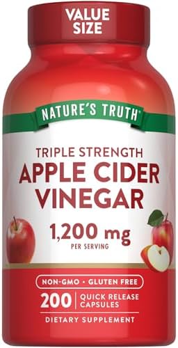 Cápsulas de Vinagre de Sidra de Manzana Nature's Truth | 1200mg | 200 Cápsulas | Fuerza Extra | Tamaño de Valor | Suplemento No Transgénico, Libre de Gluten