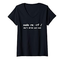 Womens Linux Sudo Rm Rf Dont Drink And Root Funny Programmer Nerd V-Neck T-Shirt