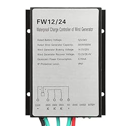 - Specification: Condition: Brand New Model: FW12/24 Battery Rated Voltage: 12/24V Wind Turbine Rated Power: 300W/600W Brake Start Voltage (Factory Value): 14.5V/29V Brake Recovery Voltage (Factory Value): 13.2V/26.4V Display Mode: Led (Light-Emitting Diode Display) Working Temperature And Humidity Range: -35-+75 Quiescent Current: 15 mA Level: IP67 Weight: Approx. 255g / 9.0oz Size: Approx. 100 * 87 * 28mm / 3.9 * 3.4 * 1.1in Wiring: 1. Connect the positive and negative terminals of the battery to the positive (red) and negative (black) terminals of the battery. 2. Connect the three-phase output voltage of the wind turbine to the three-phase input (green line) terminal of the controller fan.