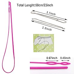 Package Include: 3 pieces easy drawstring threader replacement tool with 8 pieces cord locks, 30Pack random color Replacement Drawstrings Features: Great for replacing or adding drawstrings, making your craft work easily and quickly, save both effort and time Size of Plastic Threader: Length of the threader is approx. 58 cm/ 23 inches, and the large eye length is approx. 1.7 cm/ 0.67 inch and the small eye length is approx. 1.1 cm/ 0.43 inch, suitable size for most drawstrings Size of Metal Threader: The metal drawstring threader is approx. 3.1inches, and the metal tweezers is approx. 2.5 inches Cord Locks: Plastic double hole cord lock for locking cord for convenient use, they fit a variety of different drawstrings and types of cords