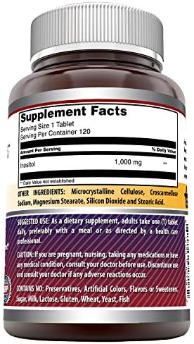 - Suplemento de Inositol 1000mg por Porción - 1 Tableta por Porción - No OGM, Sin Gluten, Testeado por Terceros - Fabricado de acuerdo con los Estándares GMP - Orgullosamente fabricado en EE.UU. con Pureza y Potencia Garantizadas
