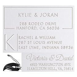 Personalized Address Embossing Stamp Handheld. Great for Wedding Favors or Birthday Invitations. Great Christmas Gift Click on “Customize Now” to enter your details. Impression size approx 2" x 1" on a rectangle plate Our Custom Personalized Embossers are made right here in the USA! We are FAST! Send us a message if you would like a different font, graphic image, larger or smaller seal etc. FAST PRODUCTION! Like Super Super Fast...We can work together to make the best custom, personalized embosser for you!