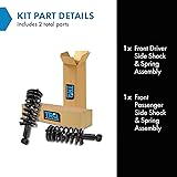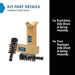 Kit Includes: 1 Front Driver Side Shock & Spring Assembly; 1 Front Passenger Side Shock & Spring Assembly Reference Numbers: 11302; 471358; SR4227 YOUR TRUSTED DIY VIDEO SOURCE: TRQ offers the largest catalog of DIY videos for replacement parts, making installation easier and repairs more accessible. Our mission is to help you "View Before You Do," with hundreds of new videos added weekly. TRUST & COMPATIBILITY: For over 25 years, TRQ has been the premium choice for direct-fit replacement parts. Confirm fitment with the Amazon Garage "confirmed fit" feature and review our full compatibility chart below before purchase. EASE OF INSTALLATION: Save time and effort with pre-assembled components designed as direct replacements for the original equipment, ensuring precise fit and eliminating the need for modifications.