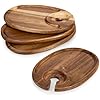 PICNIC TIME TOSCANA -Wine Appetizer Plates, Cocktail Plate with Glass Holder, Cheese Board with Wine Holder, (Acacia Wood), 9 x 6, Set of 4