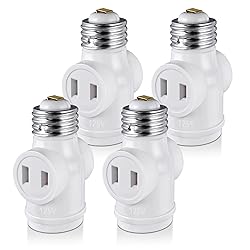 SAFE MATERIAL -The UL Listed adapter is composed of Eco-friendly phenolic, copper connector and alumiumn thread.The outlet receptacle carries electric rating up to 660W 125V. And the extended socket carries a E26 Screw bulb light up to 250W HANDY OUTLET ADAPTER -Easy way to add an outlet where you need it.Play and plug, no need to pay an electrician when you can make power available yourself HIGH TEMPERATURE RESISTANCE.The white phenolic can undertake temperature up to 150°C WIDE APPLICATION - Great way to add outlets for Christmas LED string lights;connect shop lights to an existing bulb socket;plug in security camera into front door light socket/ porch light socket;install strip lights/T5 LED Light with an AC plug; Perfet for adding a temporary outlet at a light socket in garage,basement,workshop,utility room etc