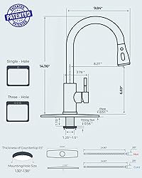 Superior Performance: Certified to cUPC, NSF 61/372, and Lead-Free standards, this kitchen faucet is constructed with SUS 304 stainless steel, drip-free ceramic cartridges and high-temp PEX hoses for enhanced durability and safety Product Specifications: The FORIOUS sink faucet has an overall height of 14.76 inches and a spout height of 6.69 inches. Maximum Deck Thickness: 1.5", Pre-drilled hole size requirement: 1.30"-1.38". Flow Rate: 1.8 Gallons Per Minute, saving 20% water Versatile Functionality: Our FORIOUS kitchen sink faucet combines three spray settings (Stream, Spray, Pause), a high arc, an 18 inch retractable hose, 360° rotation spray head, and a single handle for efficient sink coverage and effortless control Minutes to Install: Install the FORIOUS faucet for kitchen sink in under 15 minutes with no professional help. It features a 10-inch detachable deck plate for one, two, or three-hole sinks and includes all mounting hardware for a hassle-free setup Efficient and Simple Cleaning: The pull down kitchen faucet boasts a five-layer nanotechnology finish, resisting fingerprint and spots, and easy cleaning with a damp cloth for a tidy look —A reliable, cost-effective design Where Style Meets Reliability: Patent No.: US 11,215,289 B1/ US 11,614,174 B1/ US 12,473,719 B2. This sleek faucet combines precision craftsmanship with minimalist design that complements most kitchen sinks