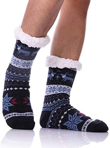 DYW Mens Fuzzy Slipper Socks Warm Thick Heavy Thermal Fleece lined Fluffy Winter Non Slip Socks