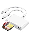 SD Card Reader for iPhone iPad Camera with USB C, Dual Card Slot USB 3.0 Memory Card Reader Supports SD/TF Card Trail Camera Viewer SD Card Adapter Portable Micro SD Card Reader No App Plug and Play