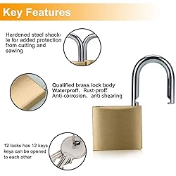 ABRAFOX Solid Brass Same Keyed Padlock keyed Alike Weatherproof Locks (1-9/16 inch 40mm-12pack