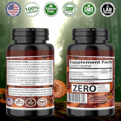 Potent Pure 15:1 Ganoderma Lucidum Extract, Reishi Mushroom 1,000mg Daily, (Vegan Non-GMO,Gluten Free) for Immune Support - 60 Veggie Capsules