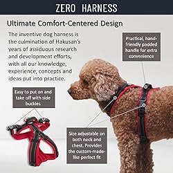 - Innovative "Zero" Pressure Dog Harness Launched in 2019, the year “zero” of Japan’s new emperor’s reign, Zero Harness is specially designed to minimize pressure on the dog's neck and trachea, with its lavishly cushioned inner contact area. Zero Harness is classified into the “Y-shaped harness”, that has the advantage of giving less pressure on the dog’s neck and trachea part. Adjustable on both neck and chest level, this "zero pressure" harness provides a perfect fitting experience for any breed and size. For the inside contact area with the body, a thickly cushioned neoprene material is adopted, so that the harness assures a reduced strain on the neck, while also providing a gentle fit. Another key feature of Zero Harness is the double buckles on both sides of the torso part, that allow you to put the harness easily on your dog without lifting up the legs. Inaddition, the handle on top, designed for extra manageability, is the default equipment for all sizes except the smallest XXS. The buckles are safety-tested and the handle grip offers a comfortable cushioning touch.