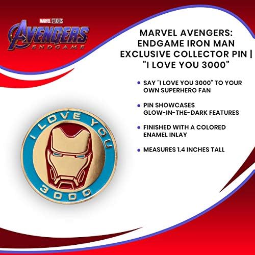 Marvel Avengers: Endgame Iron Man Exclusive Collector Pin | Glow In The Dark "I Love You 3000" Collectible Tony Stark Enamel Pin | Measures 1.4 Inches