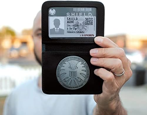 Marvel Agents of S.H.I.E.L.D. Badge ID Card Replica Set Exclusive | Marvel Studios Collectible 4-Inch Black Leather Wallet | Superhero Comic Book Accessories