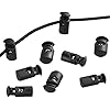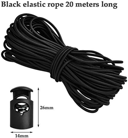 YOTINO Plastic Cord Locks End Spring Toggle Stopper Single Hole String Cord Locks and Elastic Bungee Cord Crafting Stretch String Feature ◆Shock Cord is also known as bungee rope, bungee cord, stretch cord, stretch rope, bunge, bungie, bungee, bungy, elastic cord, elastic rope, shock cord, shock rope, elasticated rope and elasticated cord ◆Easy to use: Single hole end stopper with spring loaded design is convenient for locking cord, which can keep your cord tight and secure, easy to move up and down without much effort, you can fasten the rope quickly and securely. ◆Great for Survival Needs or to Create or Repair Projects: Hammock, bungee cords/straps, beading, necklaces, bracelets, seat/chair covers, cargo net, make a creative display, and other crafted projects, do-it-yourself jewelry, home decorations, scrapbooking, creating attractive gift wraps on packages, and so much more.Store items in your garage, shed, attic, basement, storage unit, your vehicle, and much more. Specifications Cord Locks Size:27 x 14mm / 1.1" x 0.6"(L*W) Cord Diameter: 1/8 inch/ 2.5 mm wide and 22 yards/ 20 m long Quantity: 50 pcs Black Cord Locks+ 22 yards black Cord Material:Plastic,Nylon Color:Black Package Content 50 x Sing-Hole Cord Lock 1 x 65 ft 1/8 inch Elastic Bungee Cord