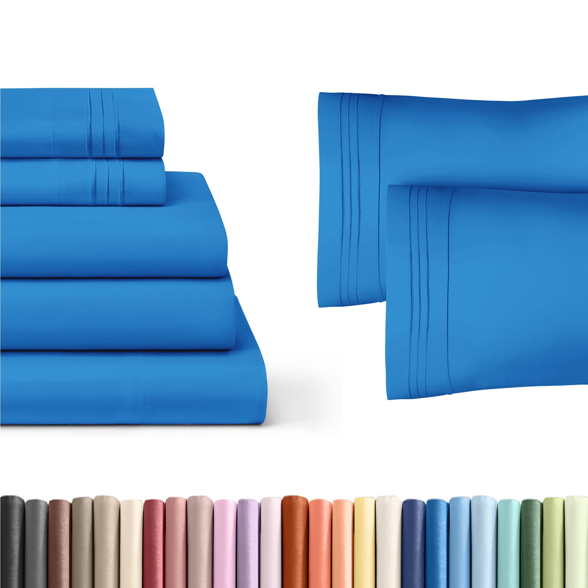 5 PIECE BED SHEET SET: 2 pillow cases and a flat sheet and 2 fitted sheets. Flat Sheet (108" x 102") 2 Fitted Sheets (39" x 80”) 2 Pillow Cases (20”x 40”) - a comfy upgrade for Adults, Kids, Teens, Boys & Girls. DEEP POCKETS/ EASY FIT: They fit mattresses up to around 16 inches deep. If your mattress is smaller than 16 inches it will fit just fine. A lot of mattresses are pretty big these days and we feel this is a good universal size that fits most mattresses. FEEL THE DIFFERENCE: If you're looking for very soft sheets, you have found them! They're breathable, cool, and super silky soft. The comfort of these sheets will have you coming back! They're softer than Egyptian cotton and organic cotton sheets! Best for any room in your house - bedroom, guest room, kids' room, RV, vacation home. Great sheet and pillowcase sets for kids, boys, girls, teens, men, and women. HIGHEST QUALITY BRUSHED MICROFIBER: A lighter difference. A softer, finer touch. These are made of the highest quality double brushed microfiber yarns. The virtually weightless wonder of CGK Unlimited sheets will have you coming back for more. Linger in your dreams. GREAT SHEETS FOR THE PRICE – Perfect for Adults, Kids, Teens, Boys & Girls! These are some of the softest and most affordable sheets you’ll find. Enjoy unbeatable bang for your buck on comfort and softness—unlike many pricey fabrics, CGK Bed Sheets deliver luxury feel at a reasonable cost.