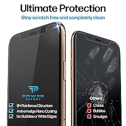 SPECIFICALLY DESIGNED FOR IPHONE 11 PRO MAX - Maintain your resale value & protect your phone from dirt, scratches and cracks with this reinforced shock-resistant Tempered Glass. EASY INSTALL KIT WITH PRE-INSTALLED GLASS - Our 60 second Easy App Tray guarantees you'll have a perfect, bubble-free install. Just peel off the sticker, place it and press on your phone. If you are not 100% satisfied, we'll send a new one for FREE. Kit includes: 2x Glass Screen Protectors, 1x Easy App Tray, 1x Instruction Manual, 2x Cleaning Wipes, 2x Microfiber Cloths and 2x Dust Removal Adhesive Strips. CRYSTAL CLEAR TRANSPARENCY - Experience the full effects of your stunning Apple iPhone Retina display with this super thin, but 9H rated hard glass shield that protects your phone's front camera, ALS and proximity sensors without affecting your photos or touchscreen sensitivity. CASE FRIENDLY FLAT DESIGN - Our tempered glass screen protector covers the flat portion of the screen only, leaving the curved edges free to fit your case better and reduce any non-adhesive white halo. Everything we do is designed to enhance your smartphone experience! POWER THEORY LIFETIME GUARANTEE - We believe in providing our customers with superior quality iPhone accessories for an affordable price, along with exceptional customer support. That's why we back all of our screen protectors with a no-hassle Lifetime Guarantee.