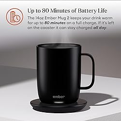 - Ember Temperature Control Smart Mug 2, 14 Oz, App-Controlled Heated Coffee Mug with 80 Min Battery Life and Improved Design, Black