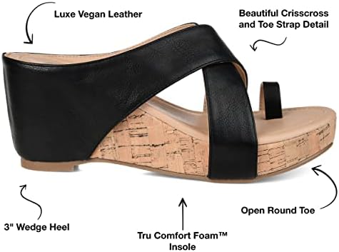 Maybe it's the slip-on silhouette, maybe it's the sassy toe loop detail- but we're pretty sure we are in love with these vegan leather wedge sandals. Crisscross Open-Toe Sandal Multistrap Design Slide-On Design 4 mm Tru Comfort Foam Footbed 3-in Wedge Heel Vegan Leather Uppers All measurements are approximate and were taken using a size 6. Please note measurements may vary slightly by size.