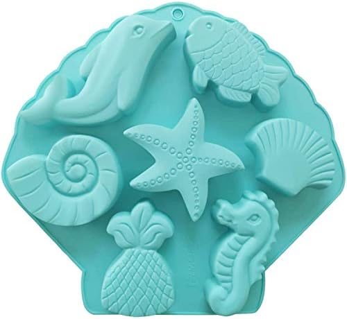 Palksky Under The Sea Silicone Cake Mold Ocean Animal Dolphin/Fish/Conch/Starfish/Sea Shell/Seahorse/Mermaid Tail Soap Mold for Bath Bomb Jelly Mousse Candy Chocolate Mold Random Color