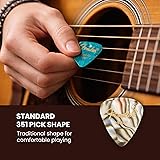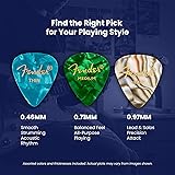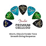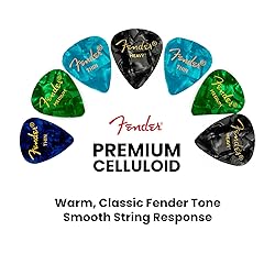 FIND YOUR IDEAL GAUGE: Includes Thin (.46mm), Medium (.71mm), and Heavy (.97mm) picks so you can compare flexibility, control, and attack to discover your perfect feel DESIGNED FOR EVERY STYLE: Thin for light strumming and acoustic rhythm, Medium for versatile all-around playing, Heavy for precise lead work, articulate picking, and firm bass response CLASSIC FENDER CELLULOID TONE: Premium celluloid provides a warm, round sound with smooth string release, natural flexibility, and reduced pick noise for expressive playing ICONIC 351 SHAPE: Fender’s most popular pick design features a wider body and rounded tip for comfortable grip, smooth release, and precise control across styles TRUSTED FENDER PERFORMANCE: Designed for dependable feel and consistent attack, these picks deliver the quality and reliability guitarists and bassists expect from Fender