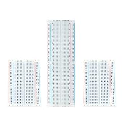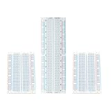 - Solderless breadboard are great for building and testing new circuits because breadboard jumper wires can be easily inserted and removed, is convenient for the prototypes and circuit design experiment and other DIY projects. If you play with Raspberry Pi, Arduinio, etc, you probably will need these at some point,this breadboard kit will be a good choise for you! Specification: Board Material: White ABS plastic with black legend Internal Contacts Material: Phosphor bronze finished. Color: white Board Base: Self-Adhesive Tape The size of 830 pin Breadboard:16.6cm x 5.4 cm x 0.8 cm (6.54 x 2.13 x 0.32 inch) The size of 400 pin Breadboard: 84 x 54 x 8 mm (3.3 x 2.13 x 0.32 inch) Packages Includes: 1 x 830 pin Breadboard 2 x 400 Pin Breadboard