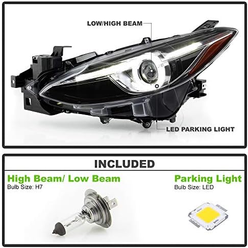 DESIGNED REPLACEMENT FOR2014-2016 Mazda 3 w/ Factory Halogen Headlight[4-Door Sedan | 4-Door Hatchback]OEM Equivalent Part Number: BPW1510K0, MA2503144, MA2502144, BPW1510L0Attention:[Compatible on Models w/ Factory Halogen Headlight Only][Not Compatible on Models w/ Factory HID Headlights]Condition: NewColor: Onyx BlackBlack Housing | Clear Lens Package Include: Driver & Passenger Side (Housing & Lens)PRODUCT FEATUREPlasma-Tube:Our "Plasma-Tubes" offer an Intense Lighting Accent that is DRL compatible, giving your Vehicle a Aggressive Night PresenceLens:Our Polycarbonate Lens offer Superior UV protection and a High Impact ResistanceStreet Legal Reflector:Highly Reflective Amber Reflectors offer OEM compliances with DOT and SAE standardsCondensation and Debris Protection:Our Lights Use the Highest Quality Butyl Sealant to Prevent any Imperfections to Enter the Light Housing