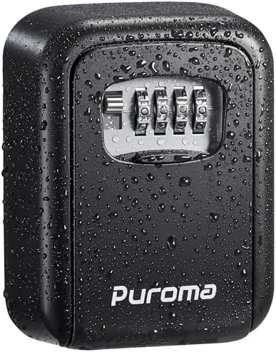 Puroma Security Key Lock Box, 4-Digit Combination Waterproof Safe Storage Lockbox with Code Wall Mount Large Capacity for Outdoor Outside House Dorm Office ID Card (Black)