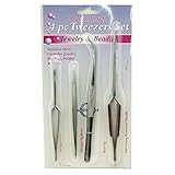 Tooltron 4 Pc Tweezers Set. Stainless steel. Great for jewelry beading, hobby & crafts. 4-1/2" Spring action tweezer 4-1/2" Straight tip tweezer 6-3/8" bent tip tweezer