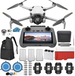 DJI Mini 4 Pro Folding Drone with RC 2 Remote (With Screen) Fly More Combo, 4K HDR Video Camera for Adults, Under 249g, Omnidirectional Sensing, 3 Batteries Bundle with 128 gb SD Card Strobe Lights and More