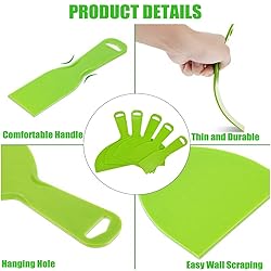 【Material】-PP plastic material, the handle and knives are integrally formed, which is flexible and protects the painted surface from scratches. The front of the knives has an oblique design for easy wall scraping. 【Definition】-A spackle scraper (spatula) is used for scraping surfaces or spreading material such as plaster in various construction trades. 【Safe】-The scraper handle is made of plastic, non-slip and comfortable to hold, safe to use while finishing cleaning within less time. 【Application】-These putty knives is ideal for puttying windows, removing loose putty, scraping paint, removing loose paint, removing vinyl or paper wall covering and patching dents cracks holes in plaster. 【Notice】-The flexible putty scraper is not suitable for shoveling stiff paint, such as cement blocks, air-dried paint blocks, dry glue, and metal blocks. It is only suitable for smooth surfaces. If you need to clean the stiff paint, you can choose the carbon steel or stainless steel style.