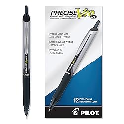 - Discover the perfect harmony of comfort, precision, and smoothness with Pilot Precise V10 RT Rolling Ball Pens. Whether you are signing important documents, jotting down notes or expressing creativity through artistic endeavors, Precise pens ensure your ideas flow with incredible control and finesse. Featuring Pilot’s Precise Point Technology, these pens deliver clean and accurate lines with every stroke. Create masterpieces of writing or art with these easy-gliding liquid ink pens that offer an ultra-smooth, skip-free writing experience. The 1 mm pen point size offers a bolder line width, allowing for more expressive writing. Archival-safe and acid-free black ink is formulated to be long-lasting and fade-resistant, ensuring your documents last for a long time. These sophisticated pens feature a convenient retractable design with a metal clip, so you can carry them easily. Elevate your writing with Precise - America’s favorite rolling ball pen brand, available in several vibrant colors.