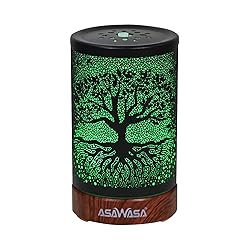 ASAWASA Diffusers for Essential Oils, Essential Oil Diffuser with Waterless Auto Shut-Off, Metal Art Aromatherapy Humidifier with Multicolor Changed Night Light,Ideal for Home Gifts Spa Yoga (Banyan)
