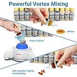 Powerful vortex mixing:our mini vortex mixer operates at a fixed speed of 5600 rpm, to quickly create a powerful vortex and thoroughly mix paints in 10-15 seconds, even though the paints have settled and separated over time. A huge relief for your wrist More stable to use: the patented three-leg appearance design, when combined with heavy weight (2.09 lb), makes the vortex shaker stay in place on your desk while mixing Not just a lab mixer: the Four E's Scientific lab vortex shaker is not only made for shaking up test tubes and centrifuge tubes, it also works well as a paint mixer for miniature paints, nail polishes, small bottles of liquids Simple touch function operation: to start shaking, simply press the bottle into the soft silicone top of the acrylic paint shaker, as to stop shaking, just lift the bottle. When vibrating, the cool circle indicator lights up Long-lasting vortexer: Made of sturdy ABS and silicone materials to resist most commonly used chemicals. Excellent enough to invest in a nail polish mixer with professional customer support