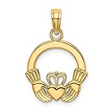 Elegant Pendant Box Included 14k Yellow Gold GUARANTEED, Authenticated with a 14k Stamp Jewelry Gifts For Women And Gifts For Men Including Gift For Mom; Wife; Mother; Father; Daddy; Daughter; Son; Sister; Brother; Friend; Coworker; Employee; Teacher; Neice or Nephew Christmas Gift; Stocking Stuffers; Sonia Jewels Has The Highest Quality Jewelry Gifts For Her and Him for Christmas; Valentines Day; Mothers Day; Fathers Day; Graduation; Birthday; Weddings or Anniversary Your satisfaction is our top priority at Sonia Jewels - Solid 14k Yellow Gold and Textured Round Celtic Irish Claddagh Charm Pendant 17mm