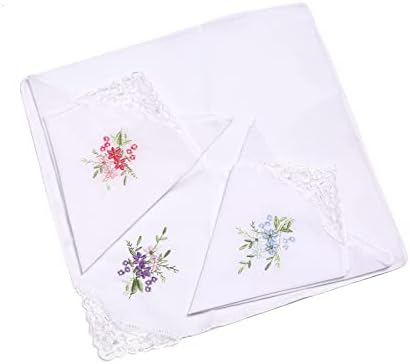 Ladies Hankies Cotton Embroidery Ladies' Vintage Floral Lace Handkerchiefs for Wedding Party (6 Pack)